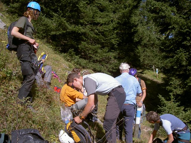 Die ganze Gruppe kurz nach dem Ausstieg beim Durstlöschen...